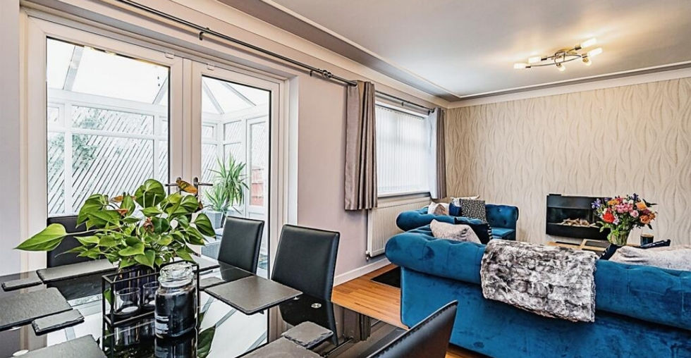 upvc double glazed window, radiator, French doors to conservatory, feature flooring, stairs off to first floor